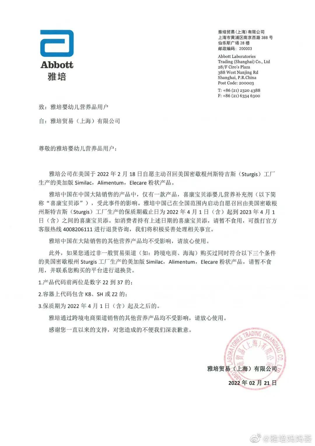 对此,海关总署提醒消费者“暂不通过任何渠道购买”以及“立即暂停食用”美国雅培公司旗下相关婴幼儿产品。
