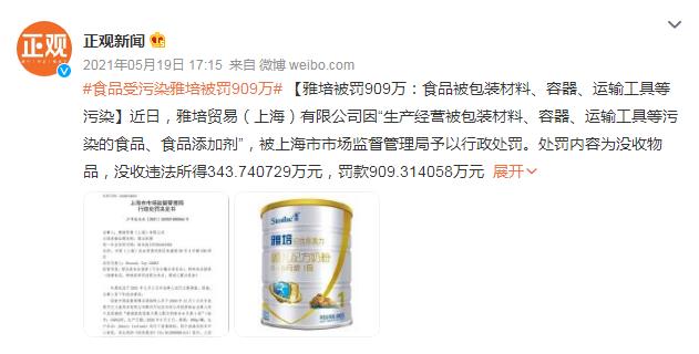 2021年雅培被罚909万 图片来源:正观新闻微博截图