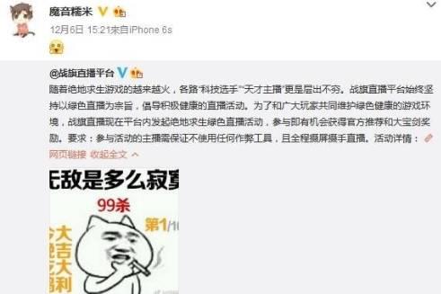 游戏时长到了一定水准,直播间的技术也就开始变强了。紧随着那些自来熟的玩家,一大批人的技术开始不断变强。那段时间最著名的,就是击杀记录的不断被刷新不仅仅是技术的证明,也是吸引更多粉丝的手法。甚至还专门制作了图片,而很多主播的名气就在那个时候打出来的。差距一拉开,就会有人出现不平衡,于是就出现了开挂的主播。魔音糯米是揭开其中秘密的重要一枪,之后陆续有主播被曝出开挂。而在魔音糯米事件的时期,卢本伟还处于平稳时期,除了“卢本伟牛逼”的梗以外,也没有其他的。