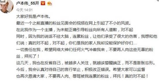 之后的发展,就是粉丝见面会上,卢本伟的带有煽动性的言论。而这一点再次被很多人抓住,用于狂锤卢本伟,并且卢本伟再次因为过激的言论举动导致自己陷入了危机之中。当然这一次,卢本伟在微博上公开道歉,没有涉及开挂的谈论了自己在粉丝见面会上的不当言论。道歉仅限于自己的不当言论,依然对自己的开挂问题加以否认。事情发展到现在,其实就是卢本伟自己不断的把自己推向了言论的最前端。比如说,他自己的500万言论引发的一波热点潮流;比如说,屡次出现的过激言论被别人作为武器使用,让自己陷入了被群起而攻的境地。其实如果没有那么多的话,没有那么多的过激言论或者行为,就算挖出了被封号,也可以解释为“朋友演示外挂”或者“小号时长没超过300小时,15杀被调查”什么的,