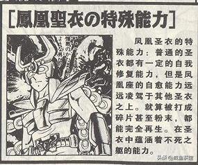 首先是装备特殊,凤凰座圣衣是从神话时代以来,唯一一件没有正式交货给圣域的青铜圣衣。