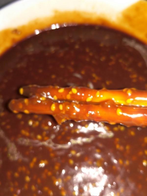 韩式辣酱25勺,鸡汁,五香粉各少许,白糖半勺,顶好花生酱1勺,番茄沙司1勺,甜面酱1勺,海天蚝油1勺