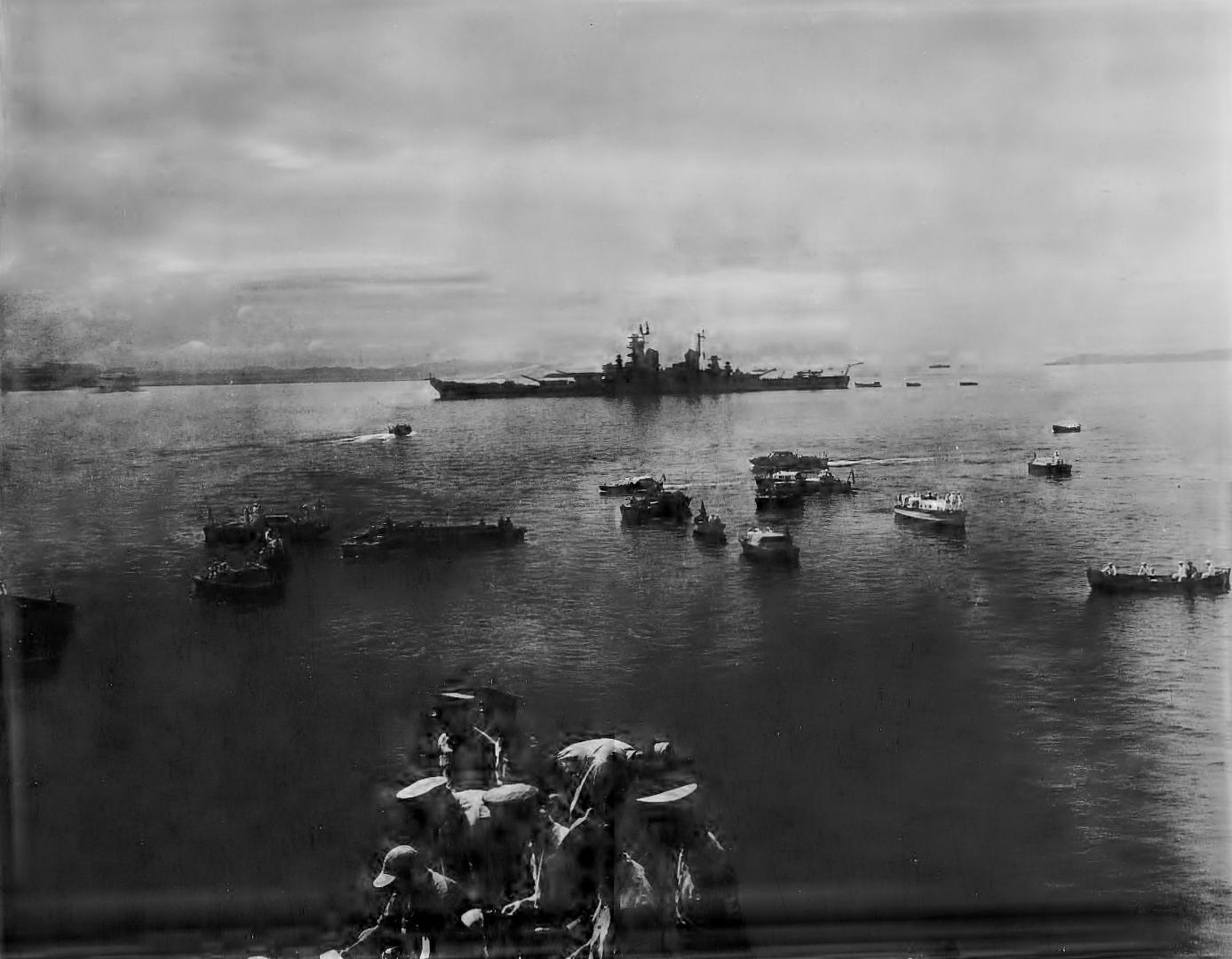 第二次世界大战结束后,在 1945 年 9 月 2 日在东京湾举行的日本投降仪式上,依阿华号战列舰作为海军上将哈尔西的旗舰。在那一直待到9 月 20 日。