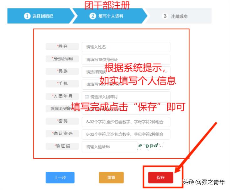 ③根据系统提示填写个人资料,填写确认后点击“保存”,完成注册。
