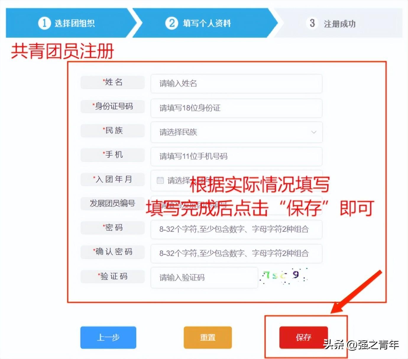 ①点击“共青团员注册”后,进入共青团员注册界面。