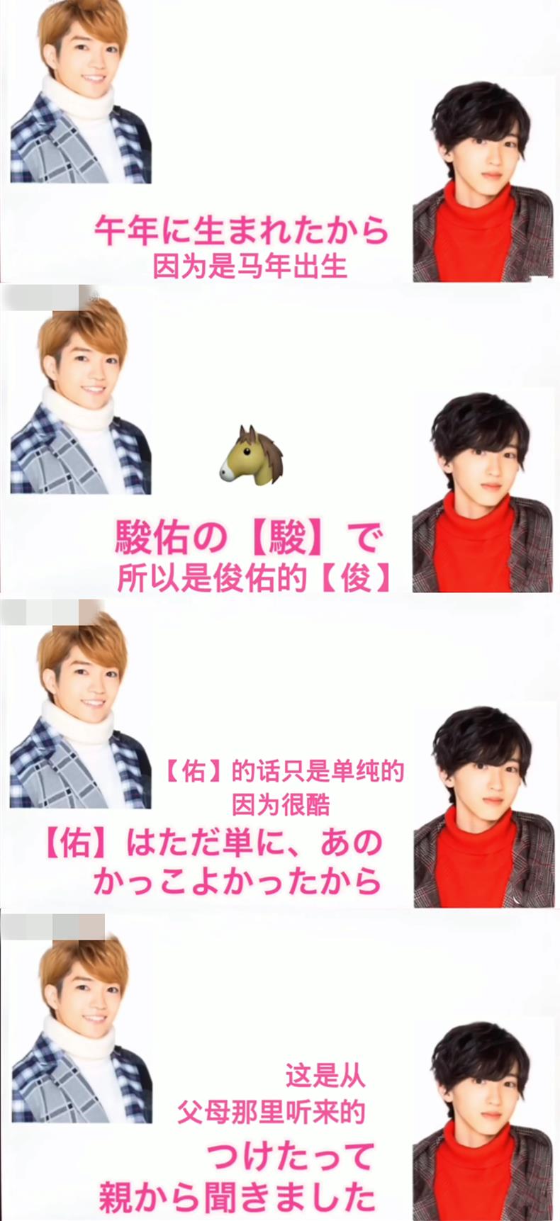 名字里的“骏”是因为他在马年出生,而“佑”则是他爸爸觉得这个字特别酷。