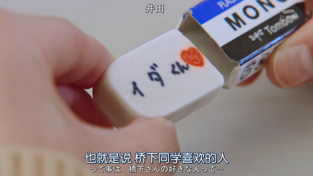 剧中的道枝骏佑暗恋一个女生,结果向女生借橡皮时,意外发现橡皮上写着女生暗恋的男孩:目黑莲。