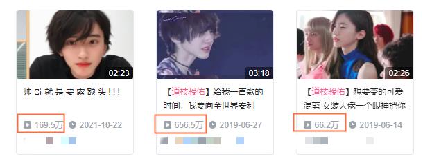 道枝骏佑在中国死忠粉不多,但是有不少路人粉和CP粉,这就导致他随便一个视频都是几十万的点赞、几百万的播放。