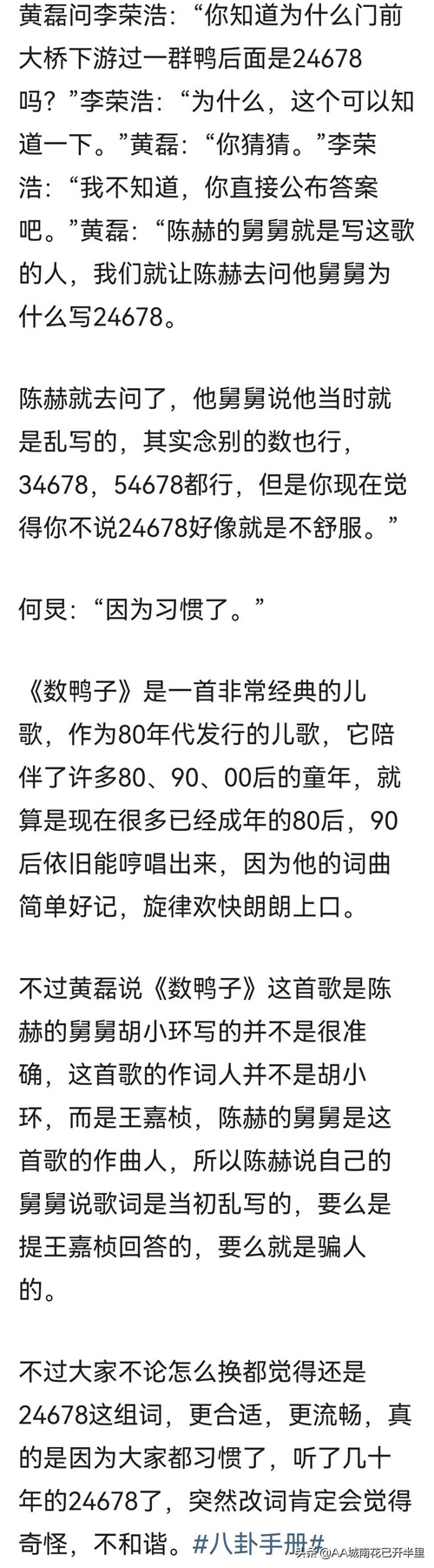 黄磊问李荣浩:为什么门前大桥下游过一群鸭后面是24678?