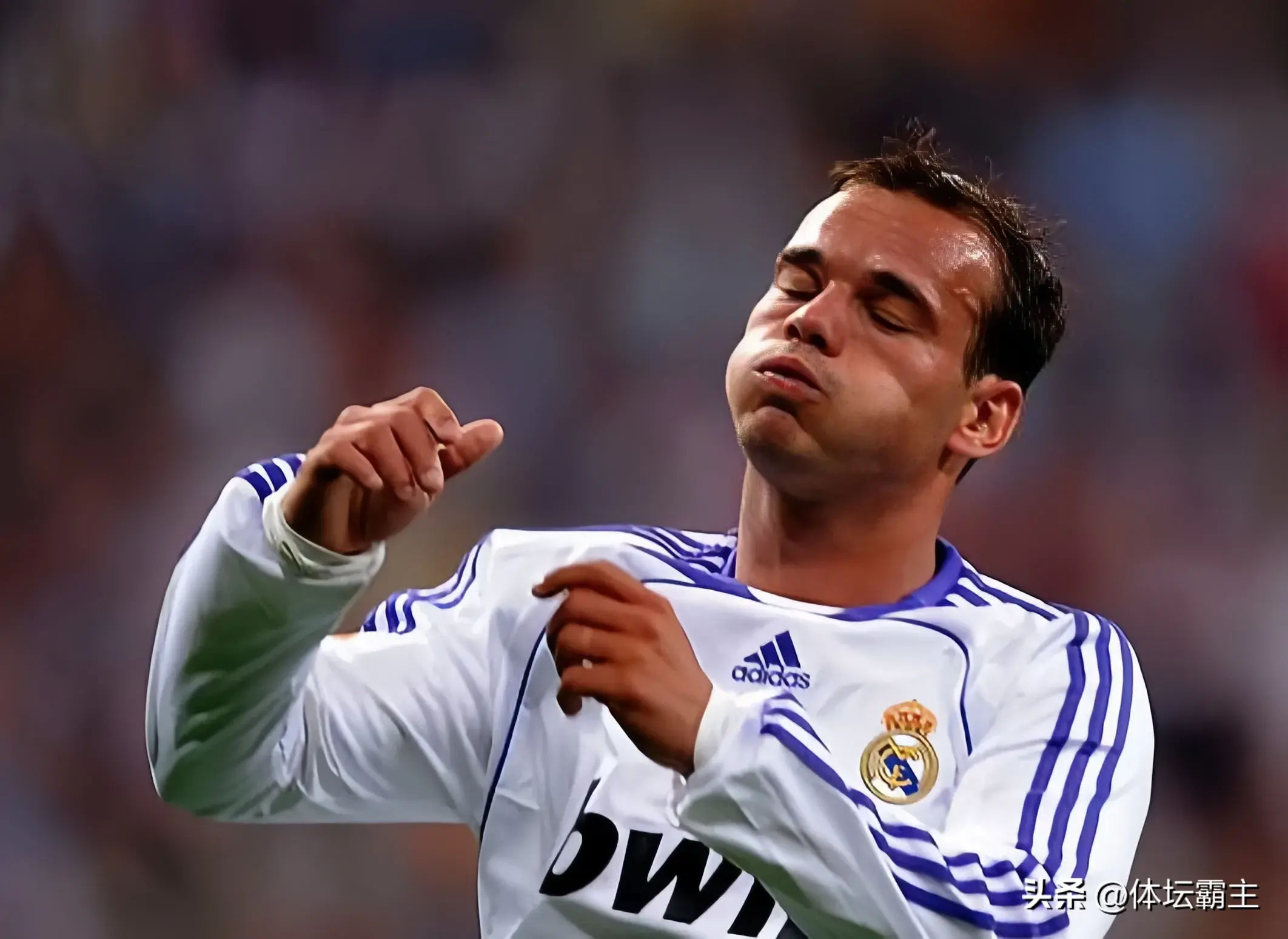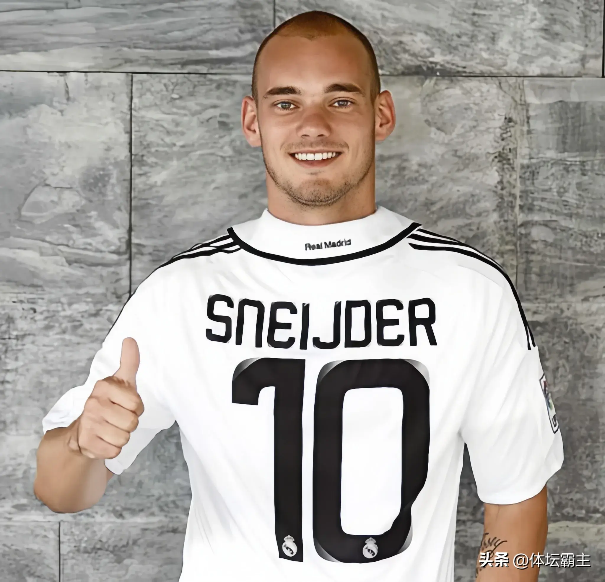 接过罗比尼奥披上皇马10号战袍的是荷兰球星“师奶”斯内德!2007年8月皇马用2700万欧元将年轻的斯内德从阿贾克斯带回马德里。