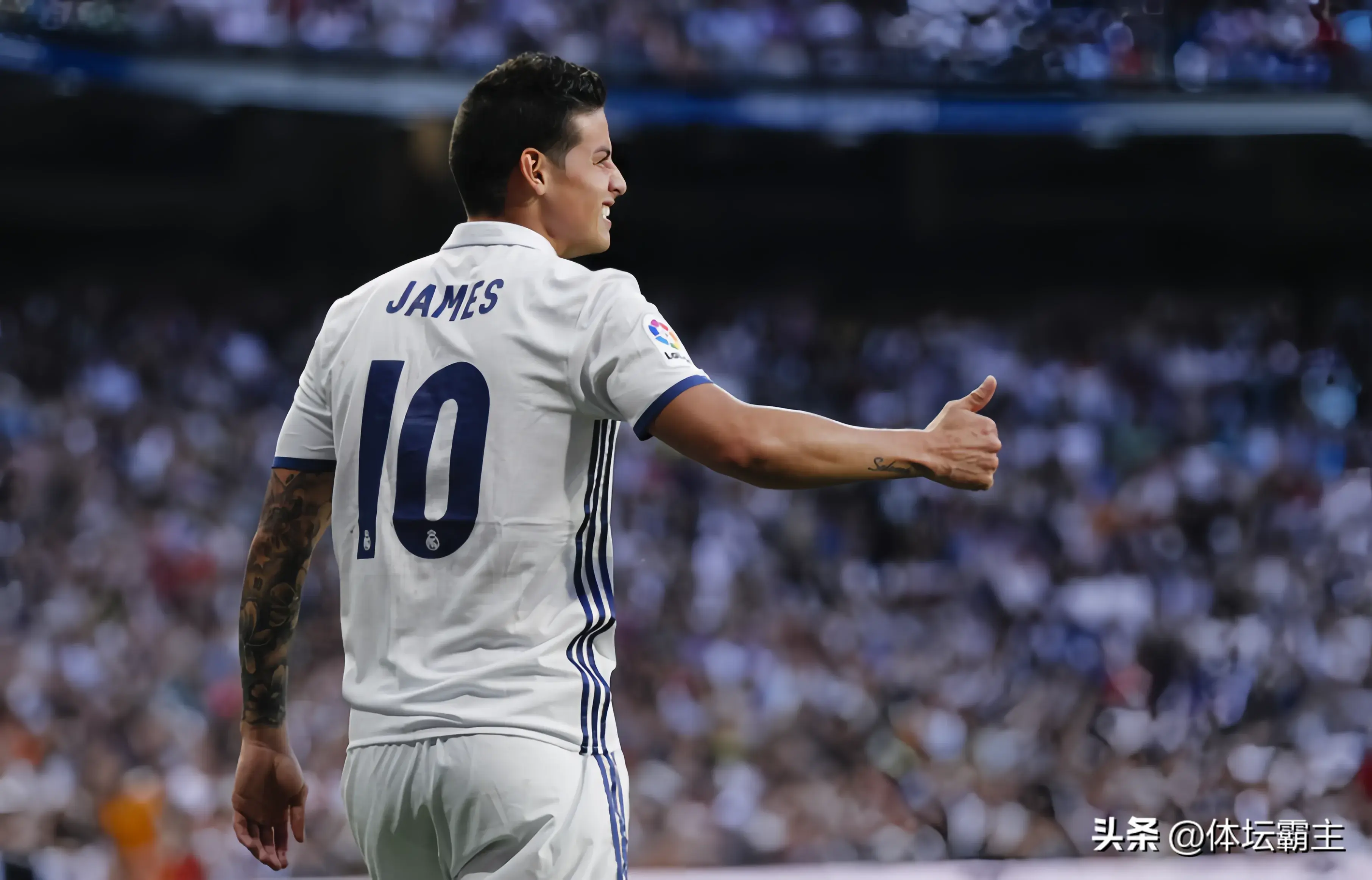 接过厄齐尔披上皇马10号战袍的是哥伦比亚球星詹姆斯·罗德里格斯,简称J罗!2014年皇马斥巨资8000万欧元将J罗从摩纳哥带回伯纳乌。