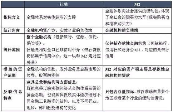 M2代表的是货币供应量,社融代表的是实体经济对货币的需求量,而且M2统计的主要是表内数据,相比包括各路资金的社融要片面,所以,社融从需求角度为制定货币政策提供了参考。