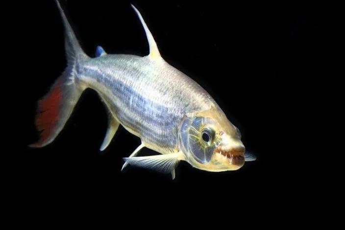 一般来说,食肉性鱼类都是靠嗅觉来捕食的,比如巨骨舌鱼、牛鲨和大白鲨,但非洲虎鱼却是一个例外,它们体内有一个特殊的气囊,可以感知周围的水流波动。