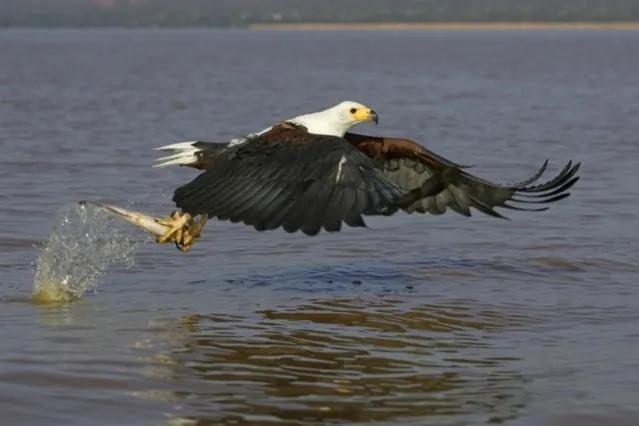 但大自然是公平的,讲究万物相生相克,每个物种都有自己的命中注定的克星,非洲虎鱼也不例外,而它们的克星正是大名鼎鼎的非洲海雕。