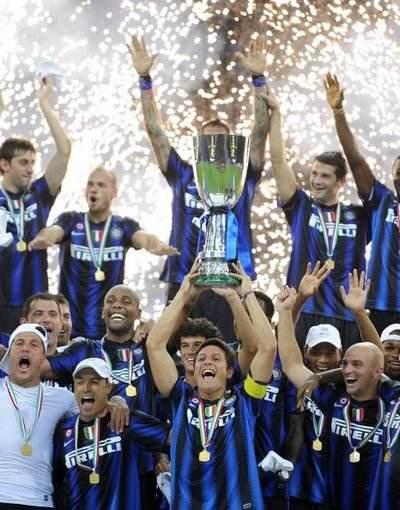 2010年5月22日,伯纳乌球场,萨内蒂打破自己身上十几年的质疑,这一夜,蓝黑军团君临欧洲。8年前距离决赛最近的时候被AC米兰横扫,他哭了,这一次登上了欧冠领奖台,他笑得很开心。一路走来他和国米都受到了不少苦难,这一夜,苦难都结束了,蓝黑军团已经建立了新王朝。