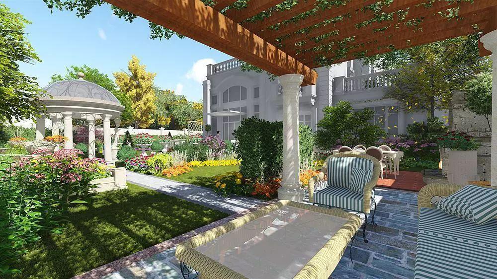 必备元素:花园、草地、坐椅。