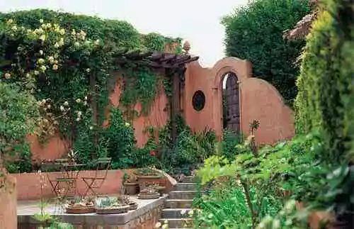 地中海式庭院花园特点:其一是不加修饰的天然风格;其二是对色彩、形状的细微感受。虽然总体是不规则风格,但是庭院花园中的每个元素都是经过认真考虑之后才加以使用的,特点是休闲舒适。