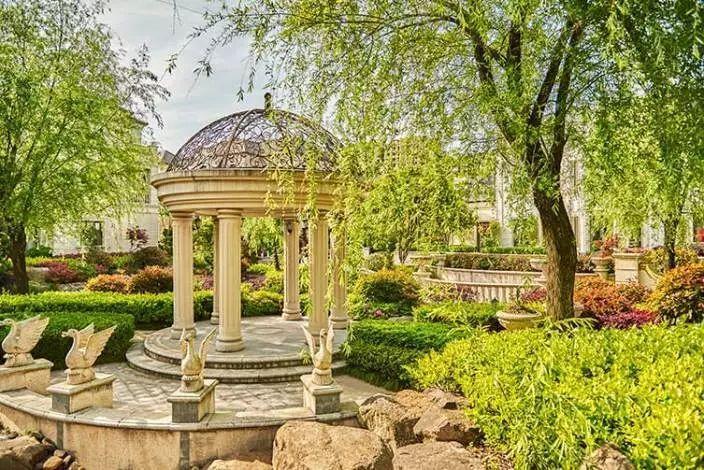 必备元素:水池、喷泉、台阶、雕像。