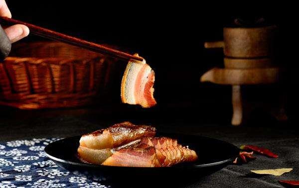 杀猪一口,斩成八块,每块炒盐四钱,细细揉擦,使之无微不到。然后高挂有风无日处。偶有虫蚀,以香油涂之。夏日取用,先放水中泡一宵,再煮,水亦不可太少,以盖肉面为度。削片时,用快刀横切,不可顺肉丝而斩也。此物惟尹府至精,常以进贡。今徐州风肉不及,亦不知何故。