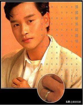 张国荣不顾摄影师的反对,一定要秀出无名指上的卡地亚三色金戒指,其中黄金象征“忠诚”,白金象征“友情”,玫瑰金象征“爱情”。