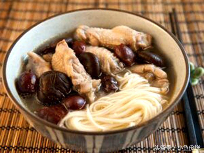 鸡翅——5个、红枣——10颗、干香菇——20个、面条——适量、米酒——1/2杯、蒜——8瓣、食用盐——适量