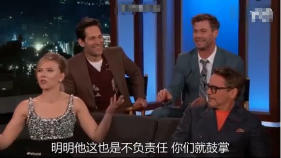 观众群里爆出了阵阵尖叫跟掌声。女神斯嘉丽·约翰逊(Scarlett Johansson)急了,斥责大家:你们跟着起啥哄啊,明明是不负责任的行为,你们还鼓掌。