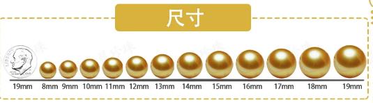 珍珠越大则价值越高,因为养殖时间越长,母贝容易发生病变或者死亡的概率就会越高,本身承载能力的要求也会更高,所以直径越大的珍珠越稀缺,产量少,价格高。品质好的南洋金珠常规尺寸在8-18mm之间,其中10-11mm的南洋金珠占总产量的65%-70%。达到13-16mm之间的金珠十分稀少。