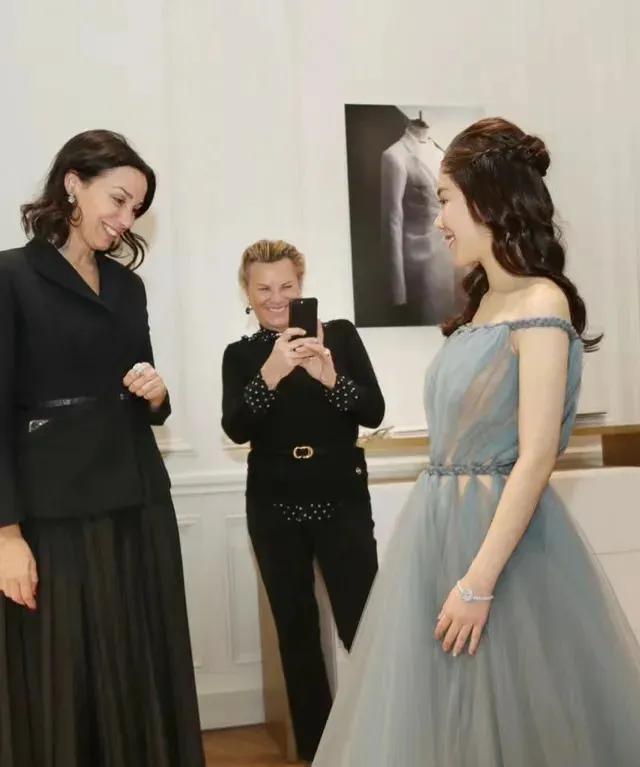 看得出来,蔡母很时尚,穿搭流行风,衣服还是深领,也难怪,有个名媛一样的女儿,自然作为老妈不能落后。可能蔡母三个女儿没有儿子,把女婿当成自己儿子了。如果真是亲生儿子这么拍照也会引起别人评价的,还是注意一点好。
