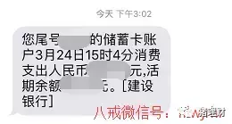 八戒投资充值时,短信不是来自于第三方,扣款信息显示是“消费支出”。