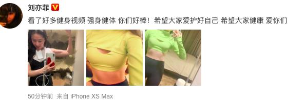 刘亦菲还和粉丝一起约定健身,承诺每天做平板支撑三分钟,看来刘亦菲为了摆脱发福意志很坚定。