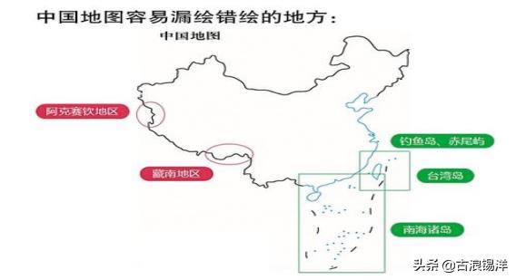 下图的标注是中国地图容易漏绘、错绘的地方,希望引起大家的注意。