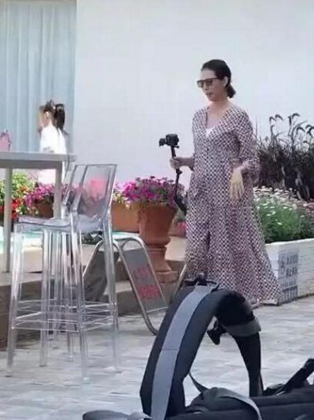 蔡少芬6月孕肚首曝光,只长肚子四肢纤细,为给女儿拍照双膝跪地