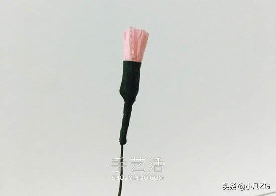 材料工具:粉色皱纹纸、绿铁丝、绿胶带、剪刀。