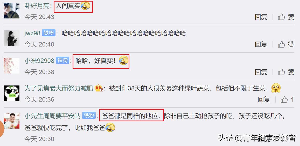 在大哥冯照洋的这条微博底下,网友纷纷留言说,真是人间真实,跟自己家里一模一样,当爸爸的从来不跟孩子抢水果,都是孩子不吃以后,才能轮到当爸爸的吃。其实总结起来说,大哥冯照洋的这条微博,让大家看到了德云社演员,下了舞台以后温情的一面,难怪会有这么多人喜欢德云社了。父爱如山,这四个字正是大哥冯照洋这条微博最真实的写照了。