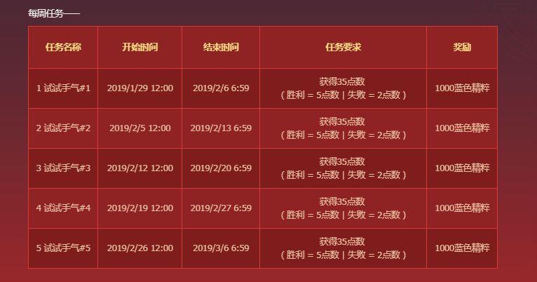 当然,你要不想要这些炫金皮肤,也可以用免费给的100代币去兑换春节法球,春节法球是抽奖道具,各位也都熟悉,看你们自己的选择了,还有一个活动就是给蓝色精粹,每周一个活动,一共5周,全部完成的话会有5000的蓝色精粹,因此各位小伙伴如果能完成的话也要尽量完成哟,毕竟5000蓝色精粹也不少。