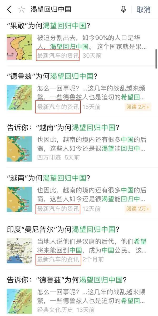 多篇名为“某国渴望回归中国”的文章