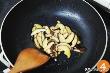 4. 余下底油, 快速翻炒香菇片, 至有点出水缩小,盛出。