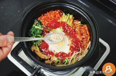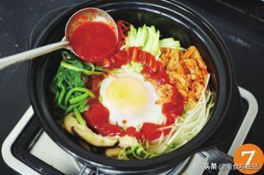 7. 石锅正中间打入生鸡蛋,放入韩国辣酱。