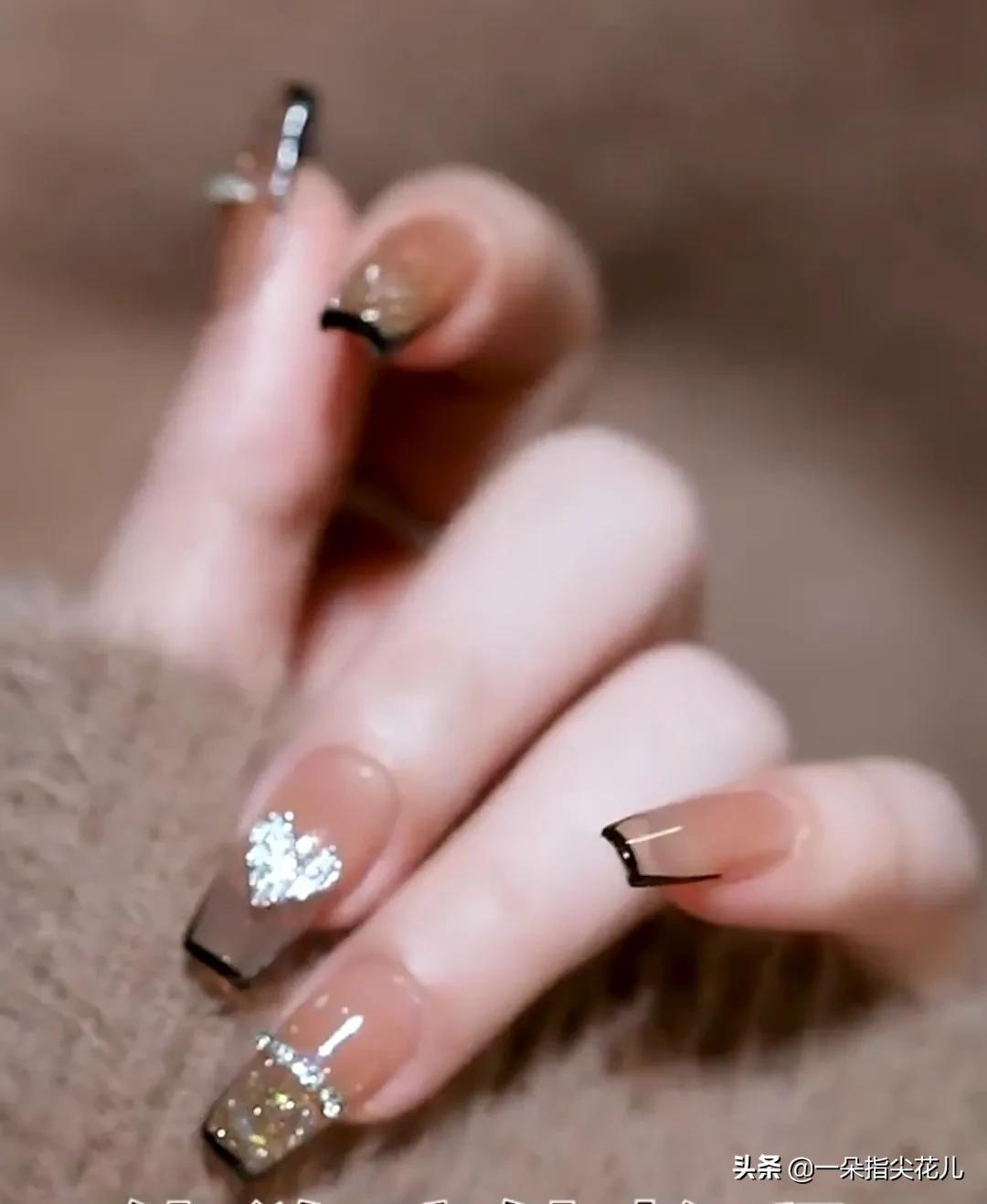 第一款:茶色+万花筒亮星+锆石链、饰品+黑色T型法式边。百搭好看!