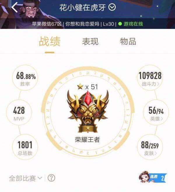 虽然说目前因为玩猴子出名的主播有不少,但是相对来说玩家对于花小健的认可度更高,毕竟只有花小健是为数不多在坚持打国服高分段的主播了,前几天花小健还用猴子打上了荣耀51星,要知道7月份新赛季刚刚开始,想要上分可是要跟一群大佬赛跑啊,花小健用上限不高的猴子仅在短短这几天打出这样的成绩,着实令玩家信服。