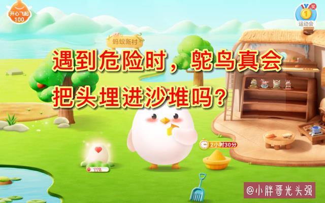 遇到危险时,鸵鸟真会把头埋进沙堆吗?9月20日蚂蚁庄园小知识