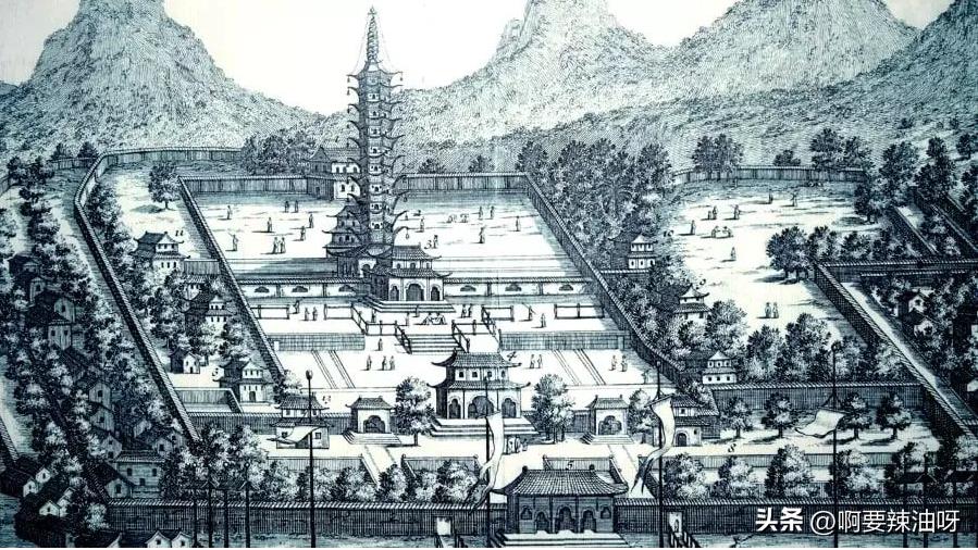 大报恩寺位于古长干里,明初,它与灵谷寺、天界寺并称金陵三大寺,而又以报恩寺为首,统领附近的次大刹2个,中刹14个。永乐十年(1412年),明成祖朱棣为纪念生母,敕令工部“依大内图式,造九级一色琉璃宝塔一座,曰第一塔,以扬先皇后之德。”