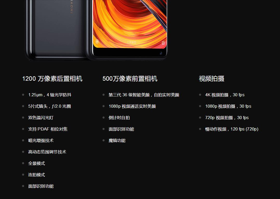 发布会上没看到雷布斯介绍前置摄像头,心中便不再对小米MIX2的前置抱有幻想。等到小米官方挂出来小米MIX2的配置,前置摄像头的介绍真心很“感人”——500W像素和美颜……懂得,不说破!