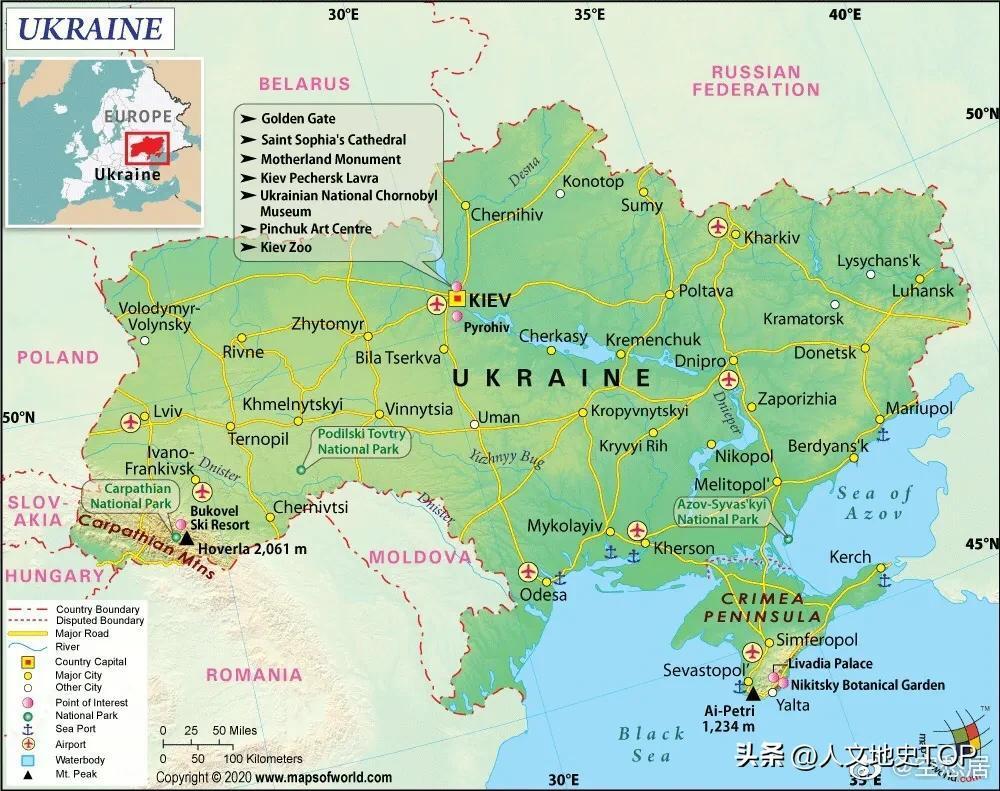乌克兰(乌克兰语:Україна,英语:Ukraine),首都基辅,位于欧洲东部,黑海、亚速海北岸。北邻白俄罗斯,东北接俄罗斯,西连波兰、斯洛伐克、匈牙利,南同罗马尼亚、摩尔多瓦毗邻。大部属温带大陆性气候,地势北高南低,矿产资源丰富。总面积603700平方千米,是欧洲国土面积第二大国家,全国分为24个州,1个自治共和国(克里米亚共和国),2个直辖市(首都基辅和塞瓦斯托波尔市)。截至2022年9月,乌克兰总人口为4113万人(不含克里米亚地区),有110多个民族,乌克兰族占77%,俄罗斯族占17%,主要信奉东正教和天主教。官方语言为乌克兰语,俄语广泛使用。