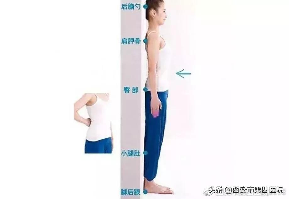 后脑勺、肩胛骨、臀部、小腿肚、脚后跟贴着墙,并收紧腹部,这样可以改善身体线条感,使身姿更挺拔。