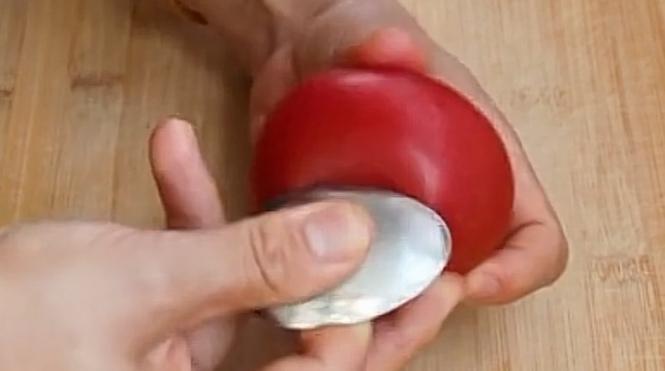 第一种方法简单粗暴,就是用削皮器削,只不过削皮时很容易将果肉削去,且软的西红柿也不好削皮,我一般不用这种方法。