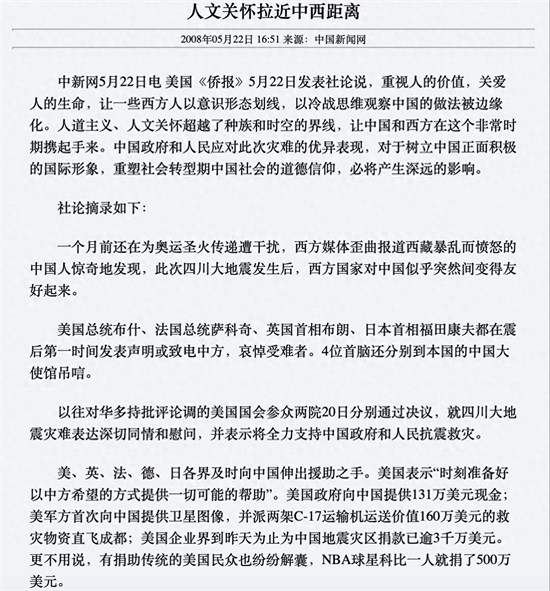 科比捐款高达500万美金,网上也是众说纷纭,有人说是假消息,不是500万美元,也不是自己捐的,而是通过基金会募集到的500万人民币。在这里,能找到的最直接的证明是中国新闻网在2008年5月22日的发文,上面明确提到了科比一人就捐了500万美元。此外,科比后来还通过基金会捐助500万人民币。中国新闻网是官方网站,想必记载的内容应该是经过考证的,应该是属实的吧。