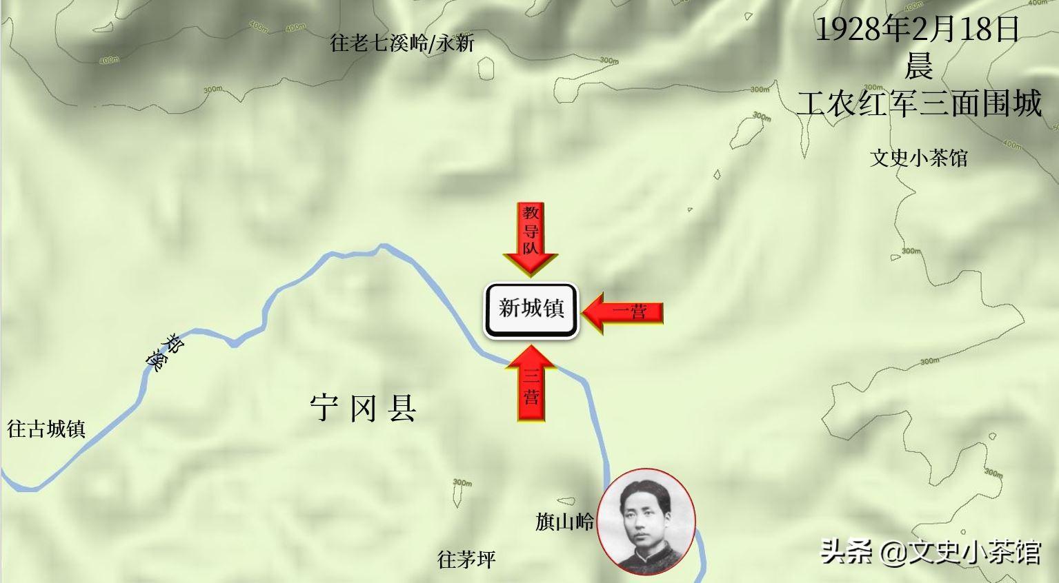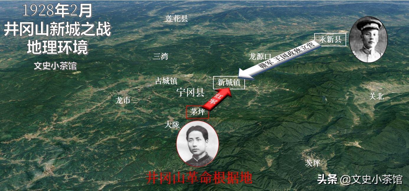 井冈山根据地的中心地区在于茅坪、茨坪等处。新城镇乃是宁冈县城所在,地势北高南低,北接永新,南连茅坪。赣军掌握此处,便相当于打开了进入红军营盘的大门。