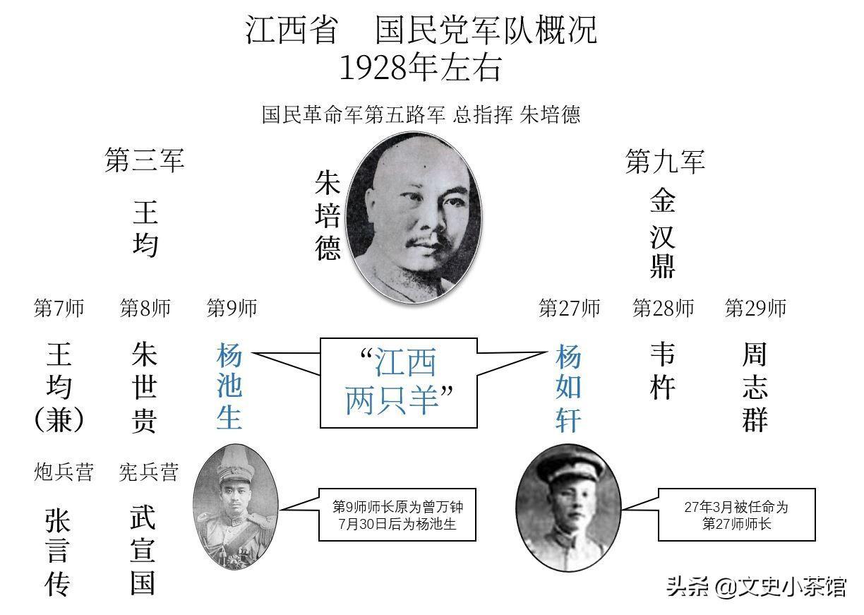 朱培德素来重情重义,他对家乡人兼同学的“两杨”寄予厚望,不久便将杨如轩封为27师师长,杨池生后来更成为王牌第9师的师长。如此这般,赣军各部团结在朱培德周围。江西省里滇人掌旗,赣人当兵的局面似乎能够继续维持了。