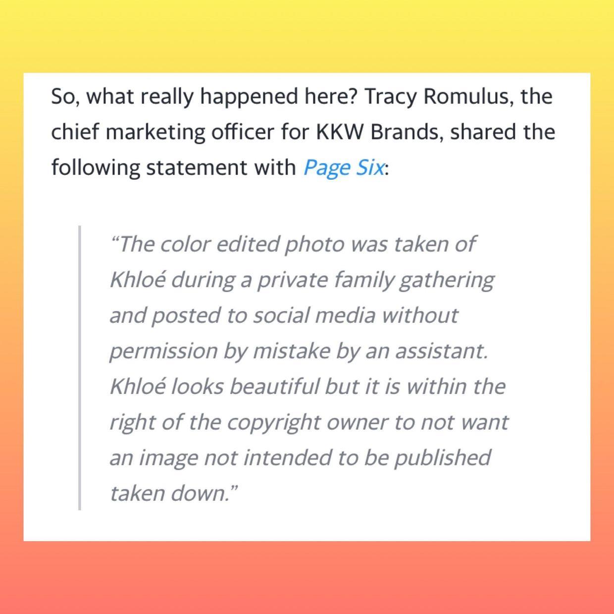 首先,卡戴珊品牌的首席营销总监联系媒体表示,这张照片是意外发布的。